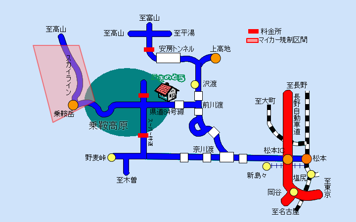 | ※新島々駅より乗鞍高原へは「乗鞍高原行き」または「白骨温泉行き」をご利用ください。 |